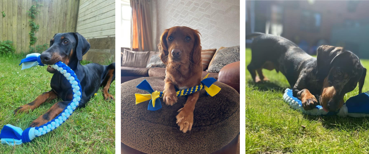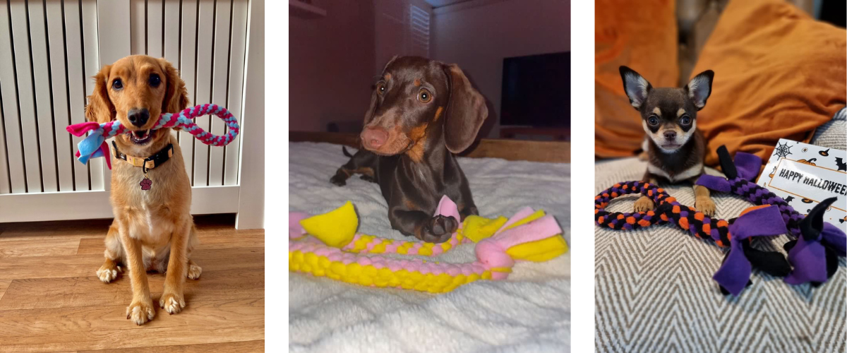 We have three dogs ourselves who are a huge part of our business! They test out every toy we make before we launch them on our website - which they absolutely love doing!