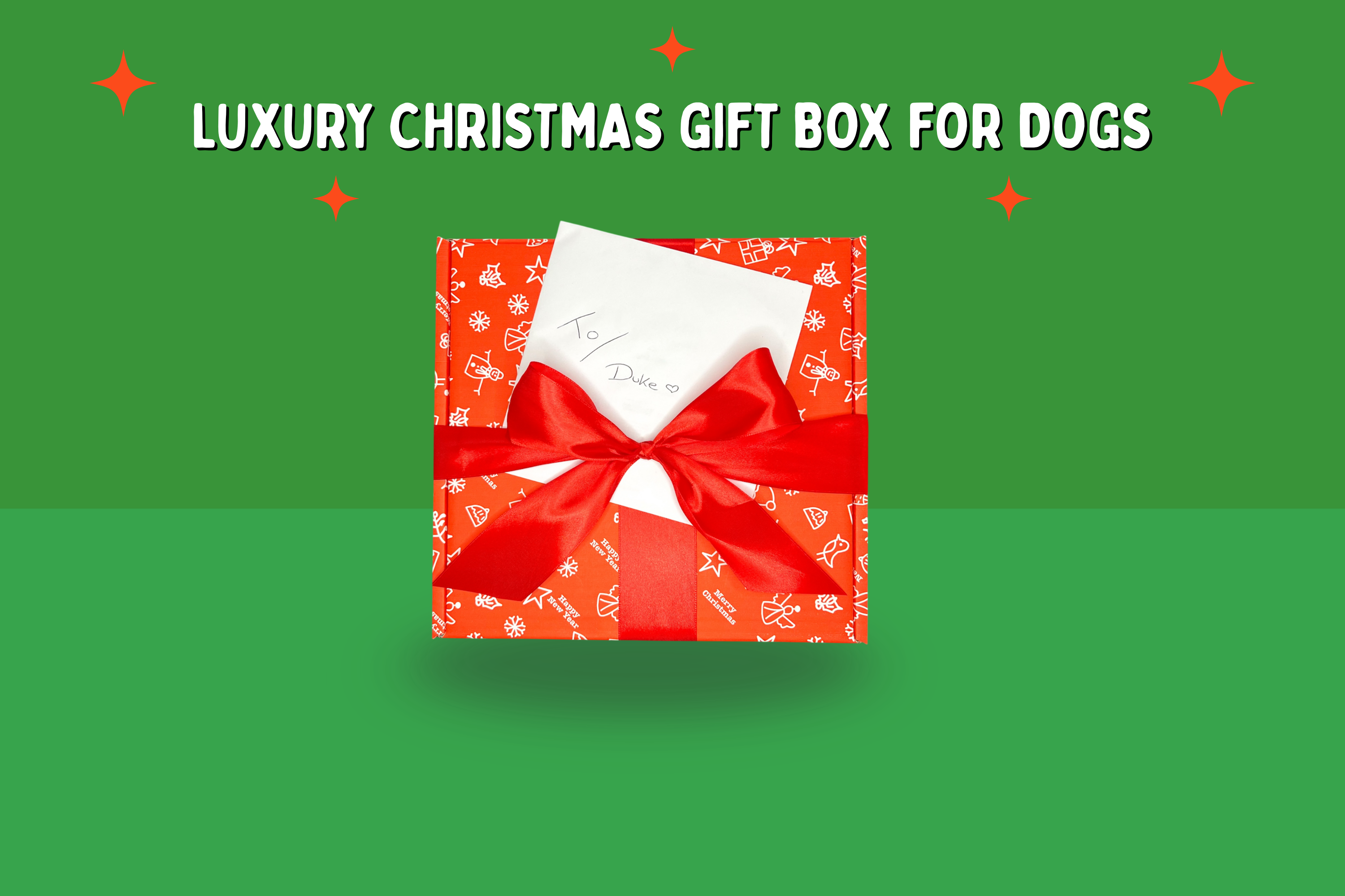Filled with goodies including a toy, treats and festive accessories. All wrapped up and ready to gift!