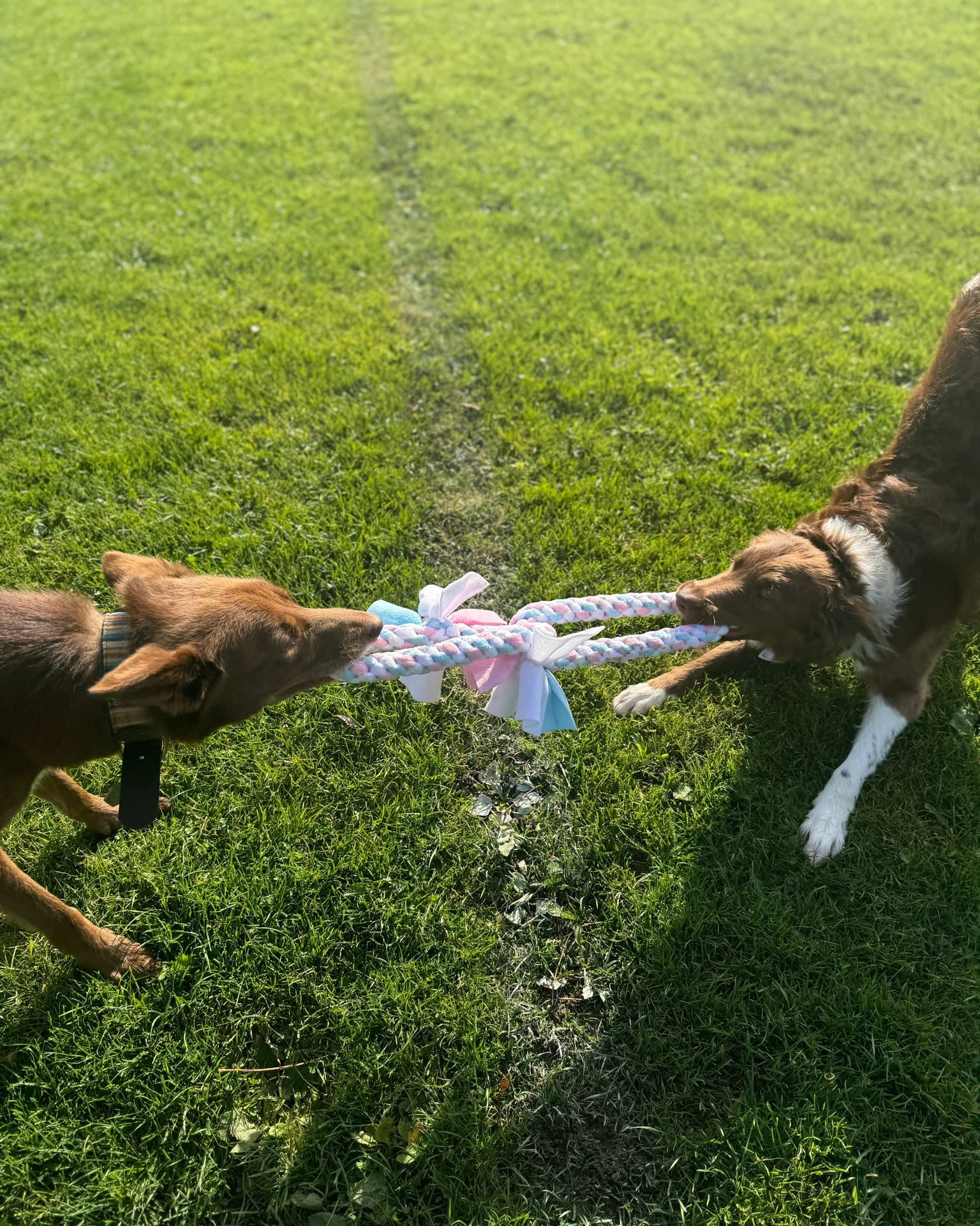 Tug of war is a great way to mentally and physically stimulate your dog or puppy.